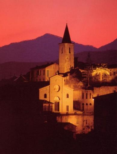 L'armoniosa sottostante piazza affacciata sulla valle ospita l'oratorio di S. Bartolomeo, custode di un polittico del 1544. Il dedalo di vicoli e "carrugi" coperti costituisce un patrimonio architettonico unico, con le antiche porte, le botteghe artigiane e facciate delle case in pietra ornate da murales.